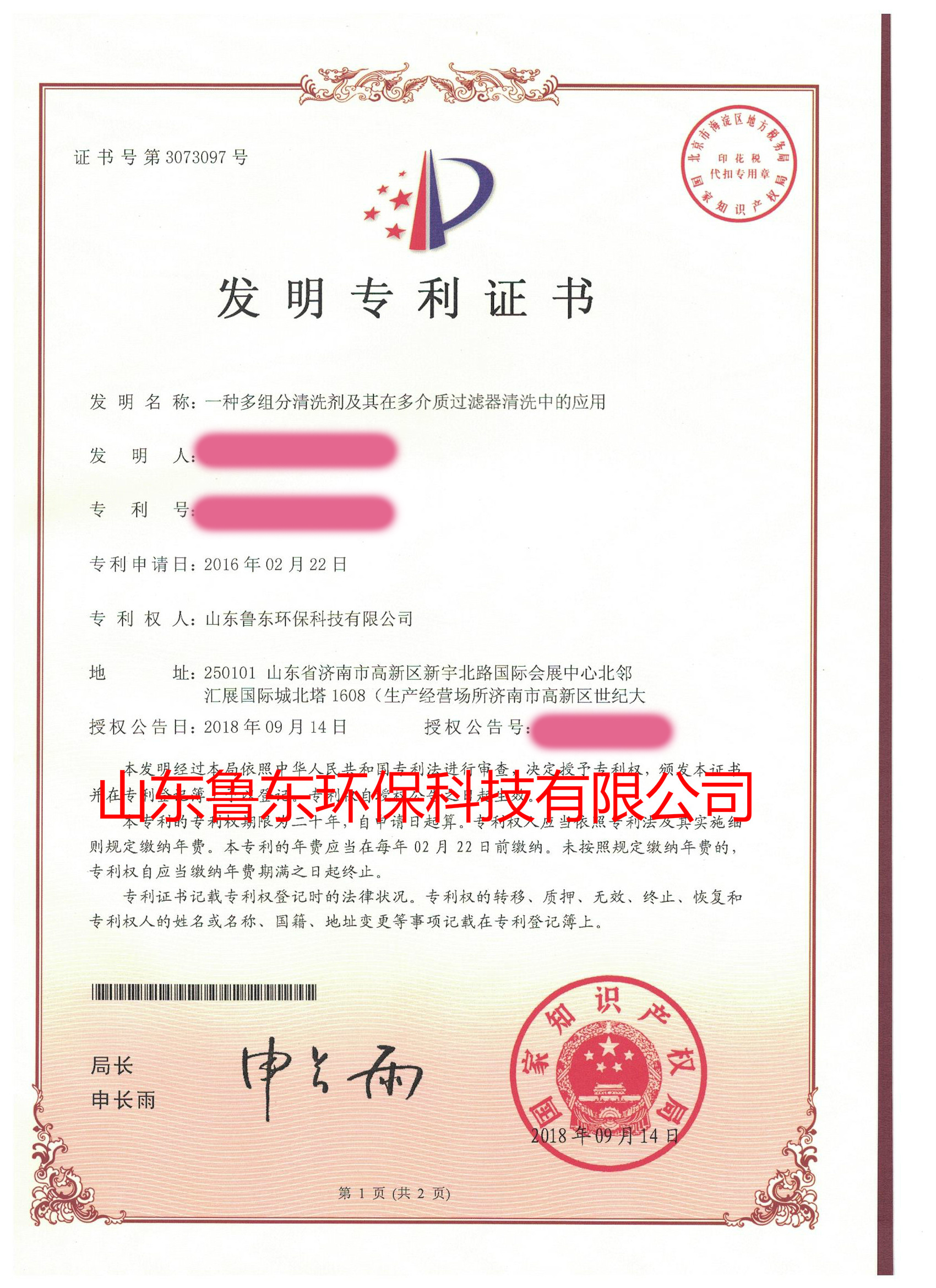該專利為山東魯東環(huán)??萍加邢薰炯夹g(shù)研發(fā)團(tuán)隊(duì)自主研發(fā)的成果,體現(xiàn)了公司在水處理藥劑行業(yè)創(chuàng)新能力進(jìn)一步提高,更體現(xiàn)了公司一直以來對水處理藥劑品質(zhì)的不斷追求。